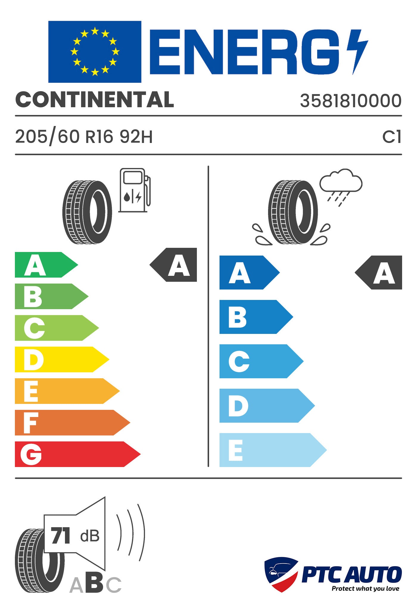 CONTINENTAL 205/60 R16 92H ECOCONTACT 6 (A-A-B[71])(Turisme vara)